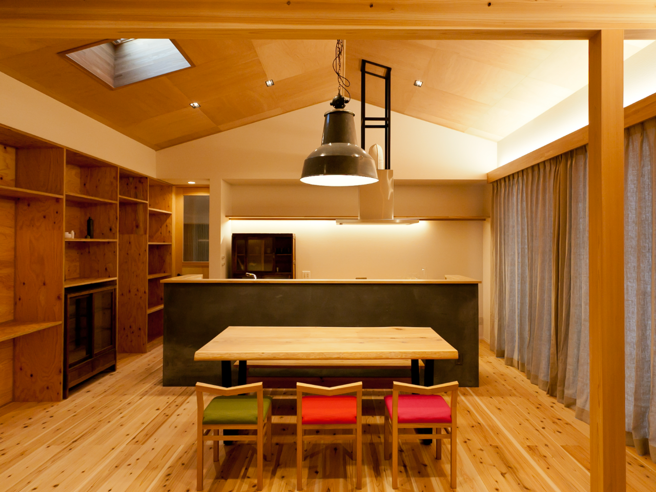 三重県四日市市 O様 三重県四日市市 T様 元々は、 施工主様のご親族が造られた ハウスメーカー住宅でした。 リノベーションをする際に 同じメーカーさんに頼むと、 費用が高額になったり 制限がかかってしまうのが悩みどころです。 コストを下げながら、 自分らしい家に造りかえたい。 今回はそんな理想を叶える リノベーションを手がけました。 外から見えてしまう 玄関のガラス面から、 木材のドアにリフォーム。 上に小窓を造って玄関に 日の光を入れる設計に。 そして、 玄関を入るとまず目に入る階段。 元々はスケルトン階段でしたが、 玄関から正面にあると、 人目を気にして階段下に 物を収納しづらいのが難点ですよね。 埃が落ちやすくて 下がすぐ汚れてしまうというお悩みも。 そんな階段に蹴込み板を新設。 掃除がしやすく、 階段下スペースを 有効活用できるようになりました。 また、本来の構造では シューズクロークが難しいと 言われていた玄関。 隣の和室二坪分を土間とつなげて、 シューズクロークを作りました。 こちらは玄関の上がりをクランクさせて、 玄関から直接シューズクロークに 行けるようになってるんです。 LDKではさらに効率的な動線を意識。 個室キッチンからオープンキッチンに。 使いやすいキッチン空間を叶えます。 キッチン→パントリー→洗面台→お風呂まで 行き止まりなくスムーズに移動できます。 以前は寒さ対策によって 仕切りが付けられていた リビングですが、 断熱窓のリフォームをすることで、 仕切りがなくても一日中ポカポカに。 開放的な空間で快適な空調を保てます。 光熱費節約にもなりますし、 カビの発生源でもある結露対策にもなります。 のこった下がり壁は活かして、 間接照明を設置しました。 洗面台の壁や天板には 人気の「モールテックス」を使用。 こちらは通常のモルタルのような 乾燥によるヒビ割れが起きず、 水を通さないので水ハネを 防止したい洗面台におすすめです。 見た目もかっこよくてお洒落ですよね。 こだわりの天井板や柱、 建具はそのままに。 照明を変えるだけで、 まったく違う印象になります。 家族が長く大事に使っていた部分は そのままにしながら、 自分らしい家を造りたい。 そんな理想を叶えるおうちができました。