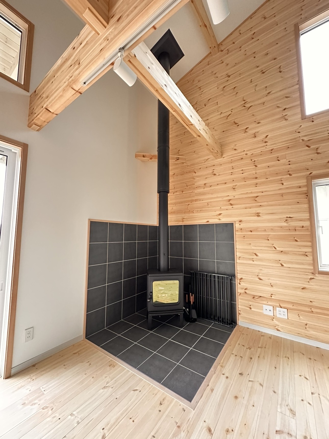 【施工事例】薪ストーブで家じゅうあったか。アクセントカラーが素敵なお家。